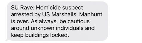 At 6:48 p.m., Shepherd sent out a RAVE alert that police were searching for a “homicide suspect” near campus. One hour later, the University sent another alert that the suspect had been arrested.