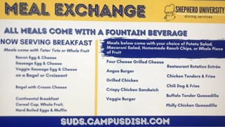 A common plan that Shepherd University provides, the flex 14-meal plan offers fewer than three meals a day (14 meals a week) but also gives $115 dining dollars, which can be used within the food service buildings.