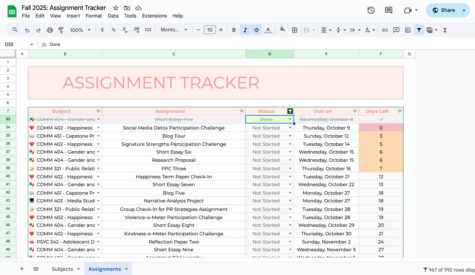 Recently, Fridley has been supporting fellow students through the creation and implementation of an assignment tracker, a spreadsheet outlining all assignments and assessments for the semester’s duration.